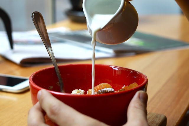 By porridge, of course, they mean oats. I had a taste too, and we both loved the dates in the dish. The apricots didn't seem to add any taste, and the taste of the coconut didn't seem to come out in comparison to the amount. Iryan reckons the taste of the currants was shadowed by the sweetness of the dates. The milk added a bit more flavour to the dish too.